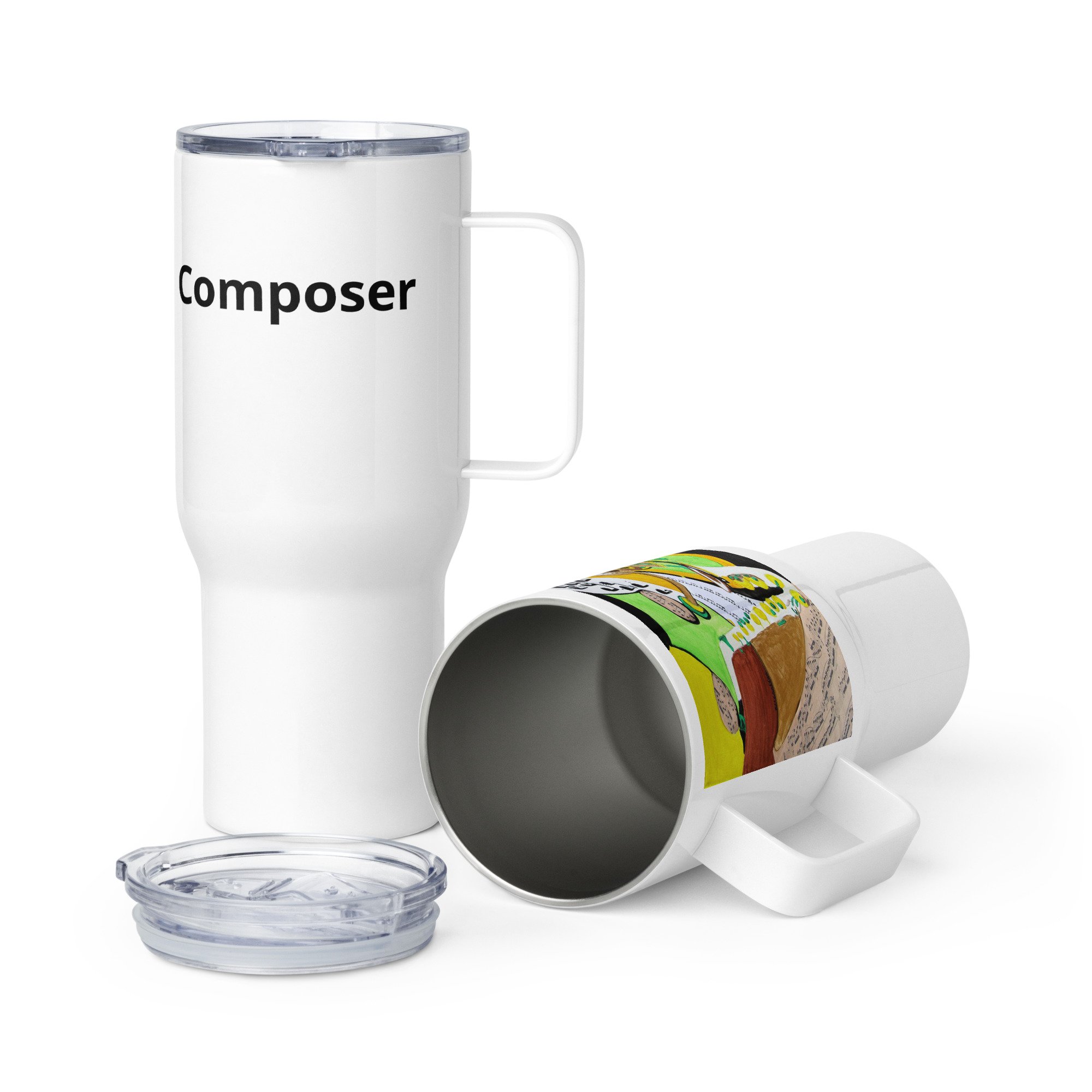 Composer travel mug with a handle